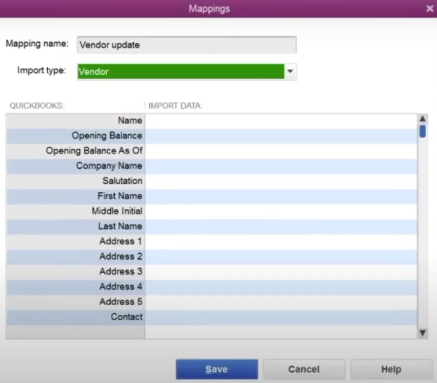 - Step 7: Carefully cheque and match the QuickBooks and Import Information Columns, and finally, click on the Save button.